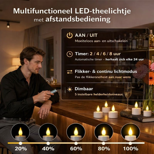BESPAAR 40%12-Pack LED Waxinelichtjes met Afstandsbediening