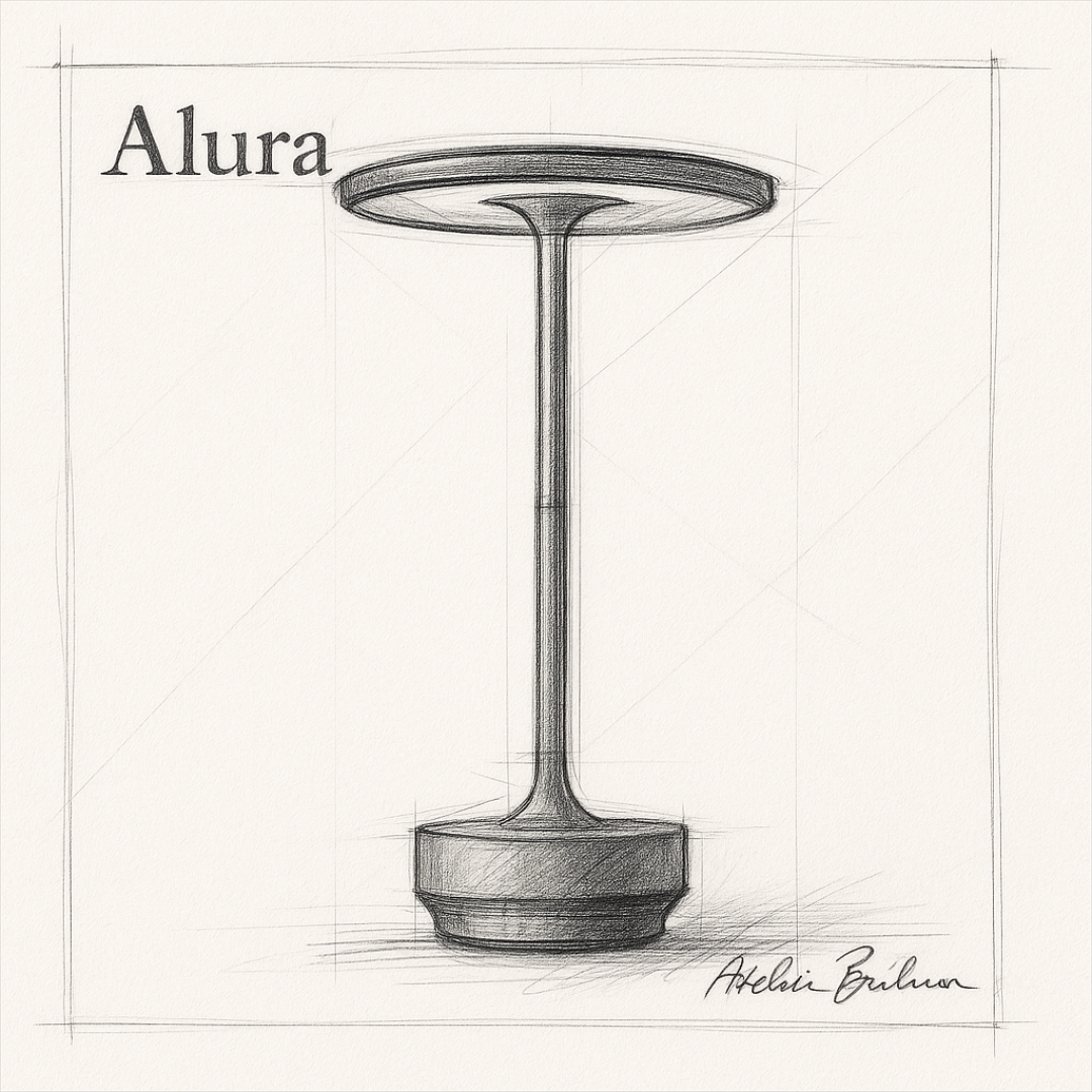 De Alura Touch Lamp is ontworpen door Atelier Briluna, een studio die bekendstaat om haar combinatie van verfijnde elegantie en moderne functionaliteit.