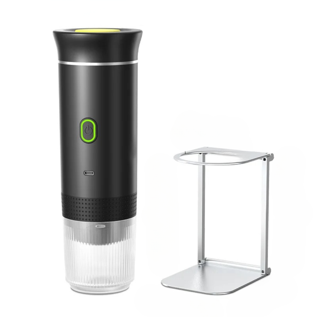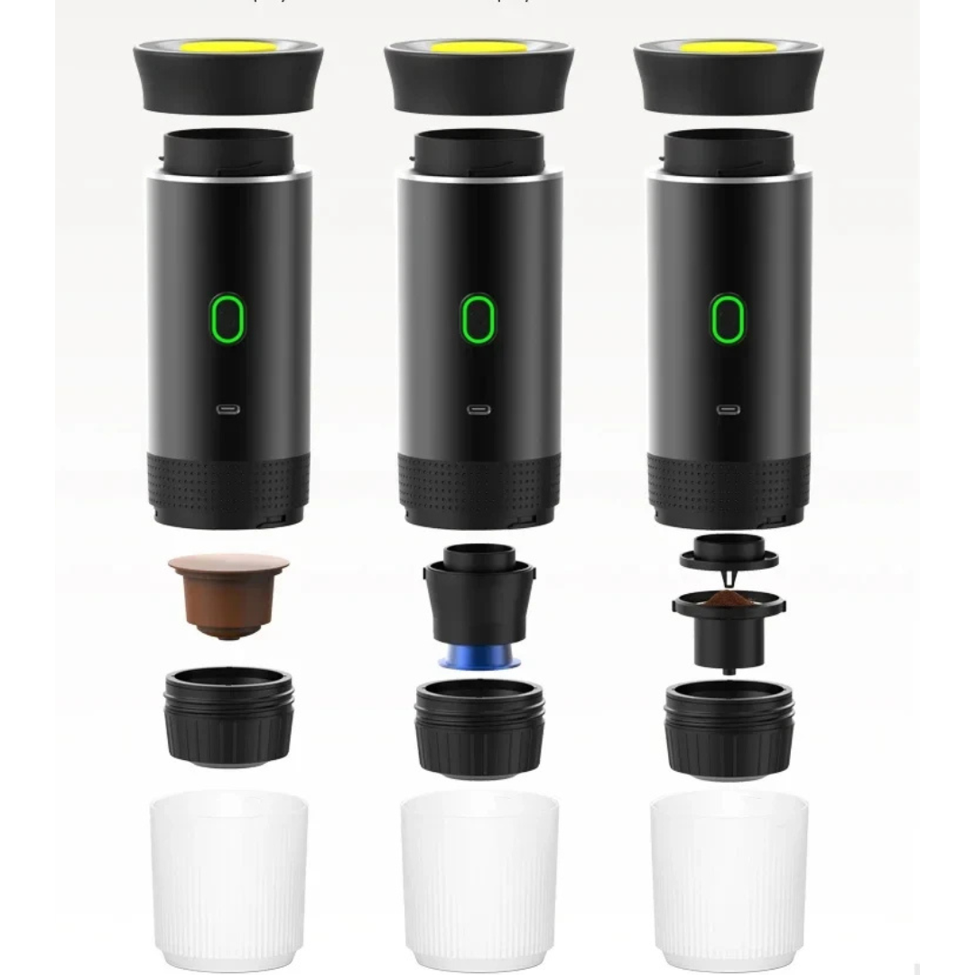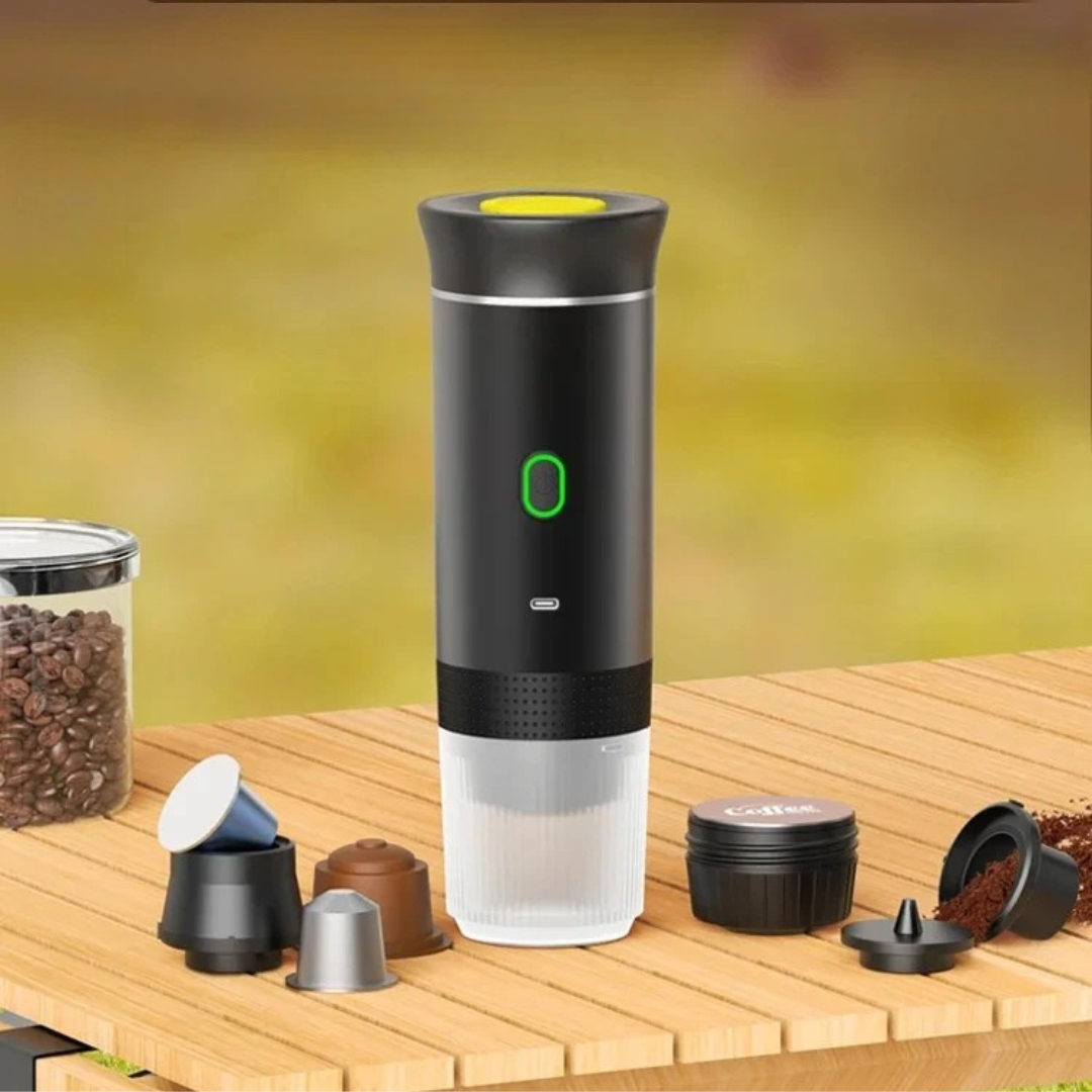 Deze slimme machine verwarmt zelf je water – zónder stopcontact – en werkt met zowel Nespresso®-capsules, Dolce Gusto® als gemalen koffie. Eén druk op de knop, en je geniet van een krachtige espresso met volle smaak en rijke crema, waar je ook bent: in de auto, op kantoor, in de bergen of aan het strand.