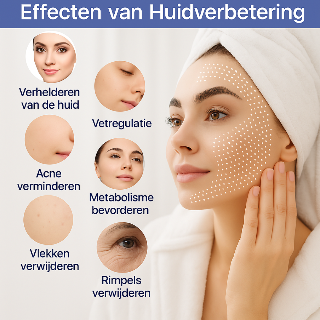 De Derminique is ontworpen om een breed scala aan huidproblemen aan te pakken: van fijne lijntjes, doffe teint en verminderde elasticiteit tot acne, grove poriën en pigmentatie. Dankzij krachtige LED-lichttherapie wordt de huid diep van binnen gestimuleerd om zichzelf te vernieuwen.