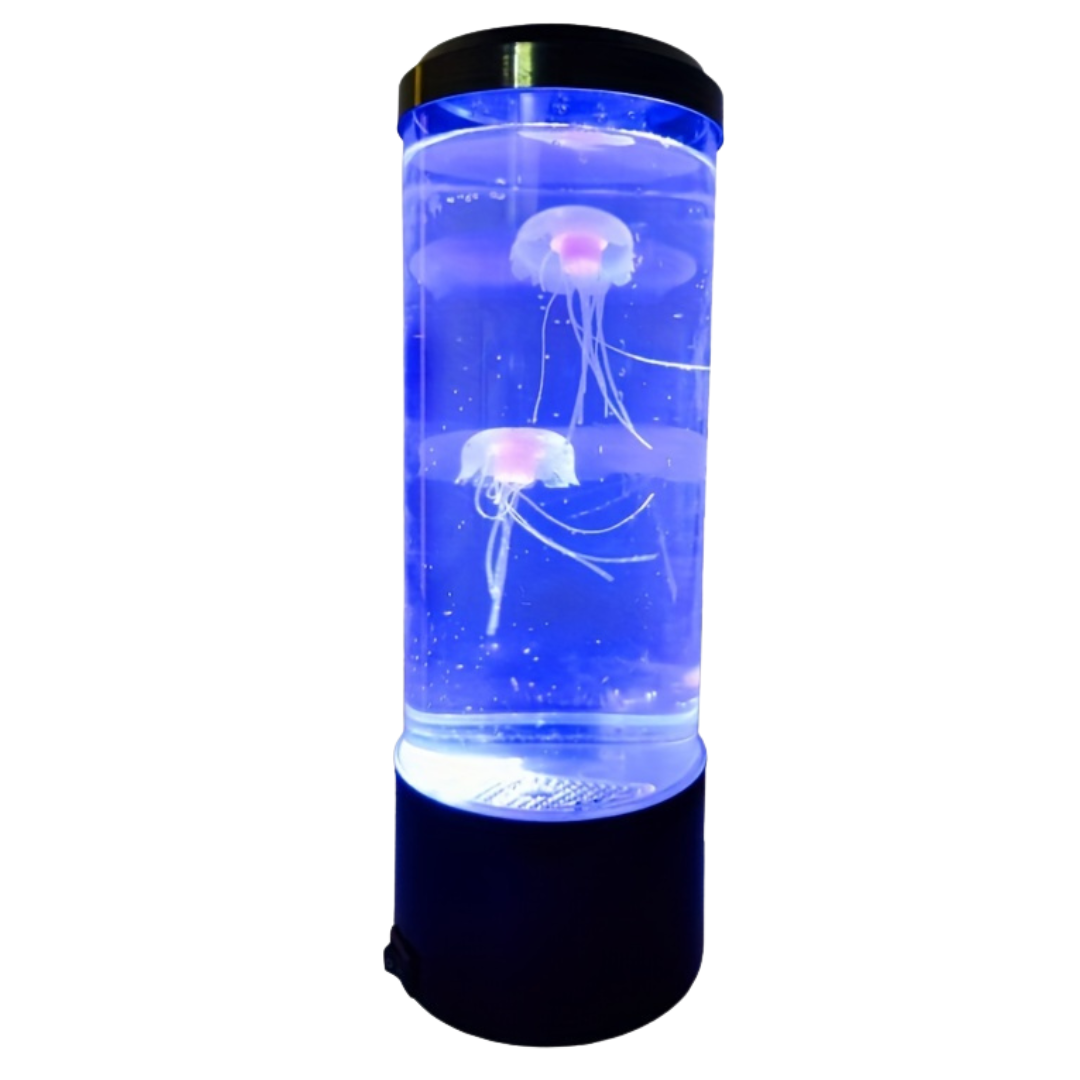Stap uit de drukte van alledag en duik in een wereld van rust en betovering met JellyDream, het unieke sfeerlampje dat de magie van de oceaan in huis haalt. In deze elegante LED-lamp zwemmen twee realistische jellyfish langzaam en sierlijk rond, terwijl het water zachtjes oplicht in een ritme van 7 wisselende kleuren. Het hypnotiserende schouwspel van beweging en licht zorgt direct voor ontspanning – perfect voor op het nachtkastje, je bureau, of als sfeervolle decoratie in elke ruimte.