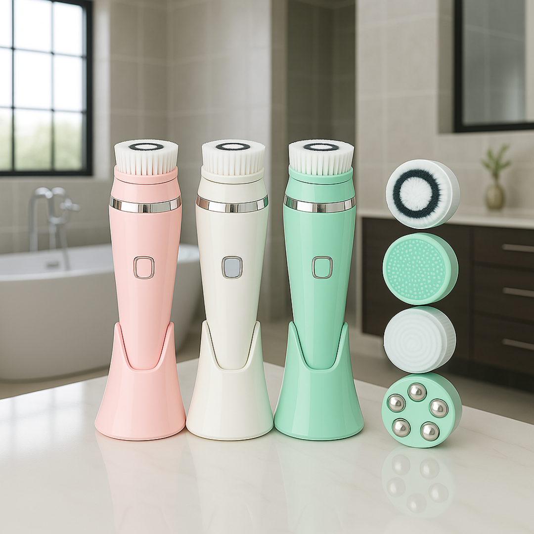 Geef je huid elke dag een frisse start met de Luminea, een luxe elektrische gezichtsborstel met 4 verwisselbare opzetstukken voor een complete huidverzorging. Deze innovatieve beautytool combineert diepe reiniging met ontspannende massage, speciaal ontworpen om je huid te zuiveren, te verhelderen en te verzorgen – thuis, onder de douche of onderweg.