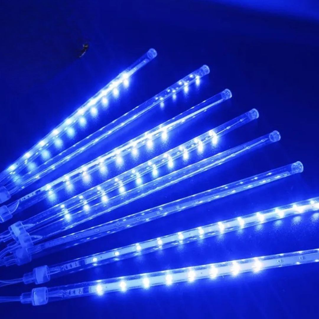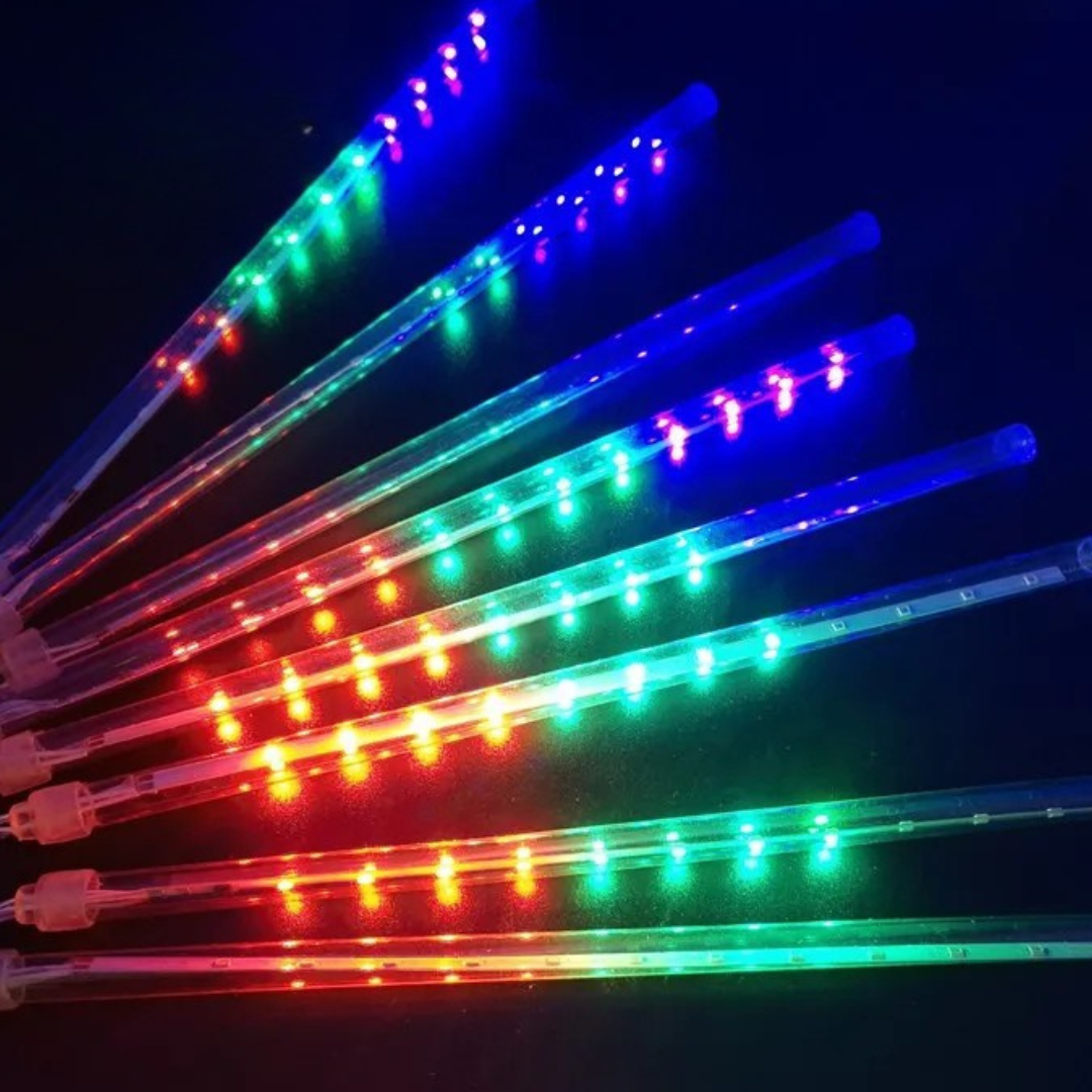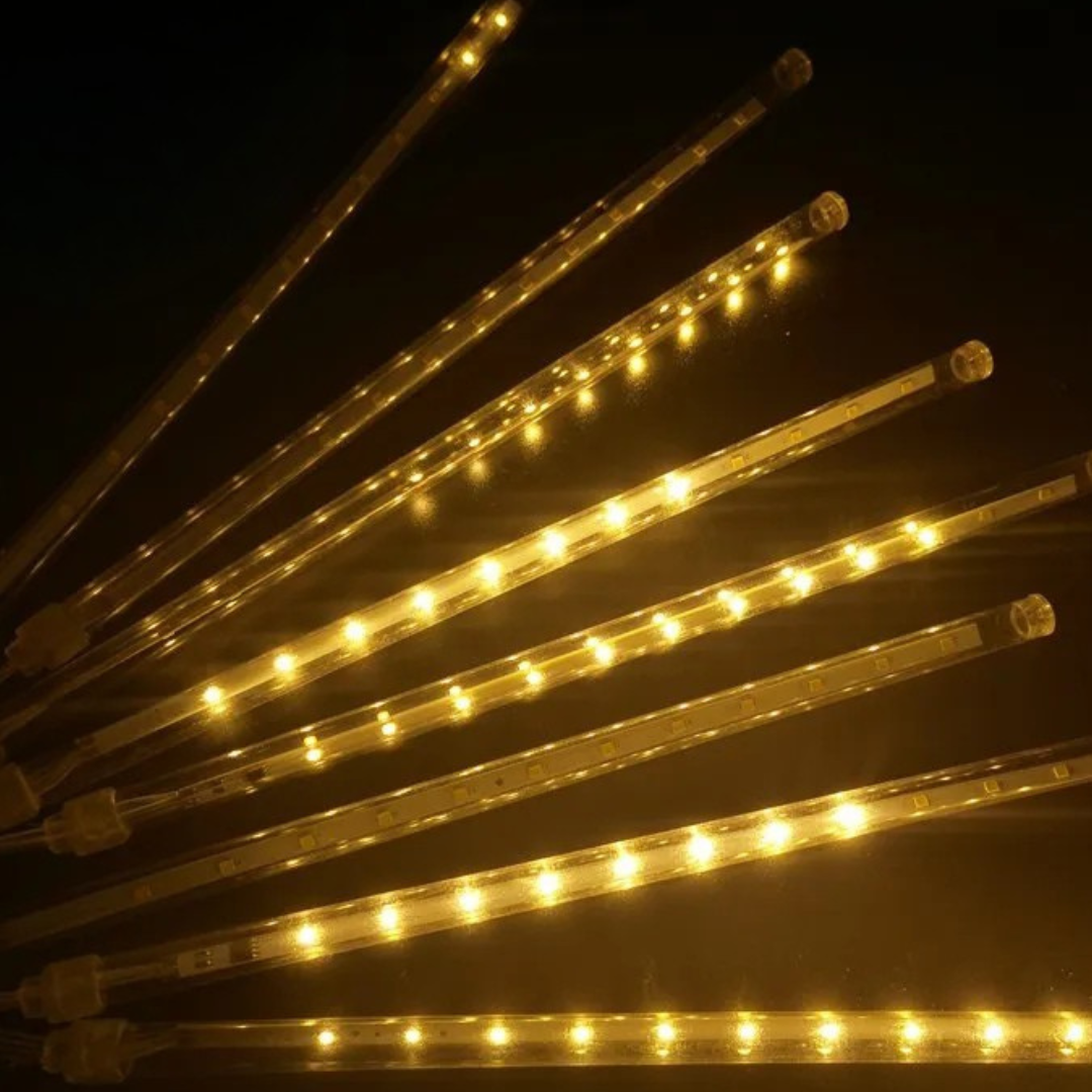 Het meteorenregen-effect loopt sequentieel: LEDs lichten per buis van boven naar beneden op.