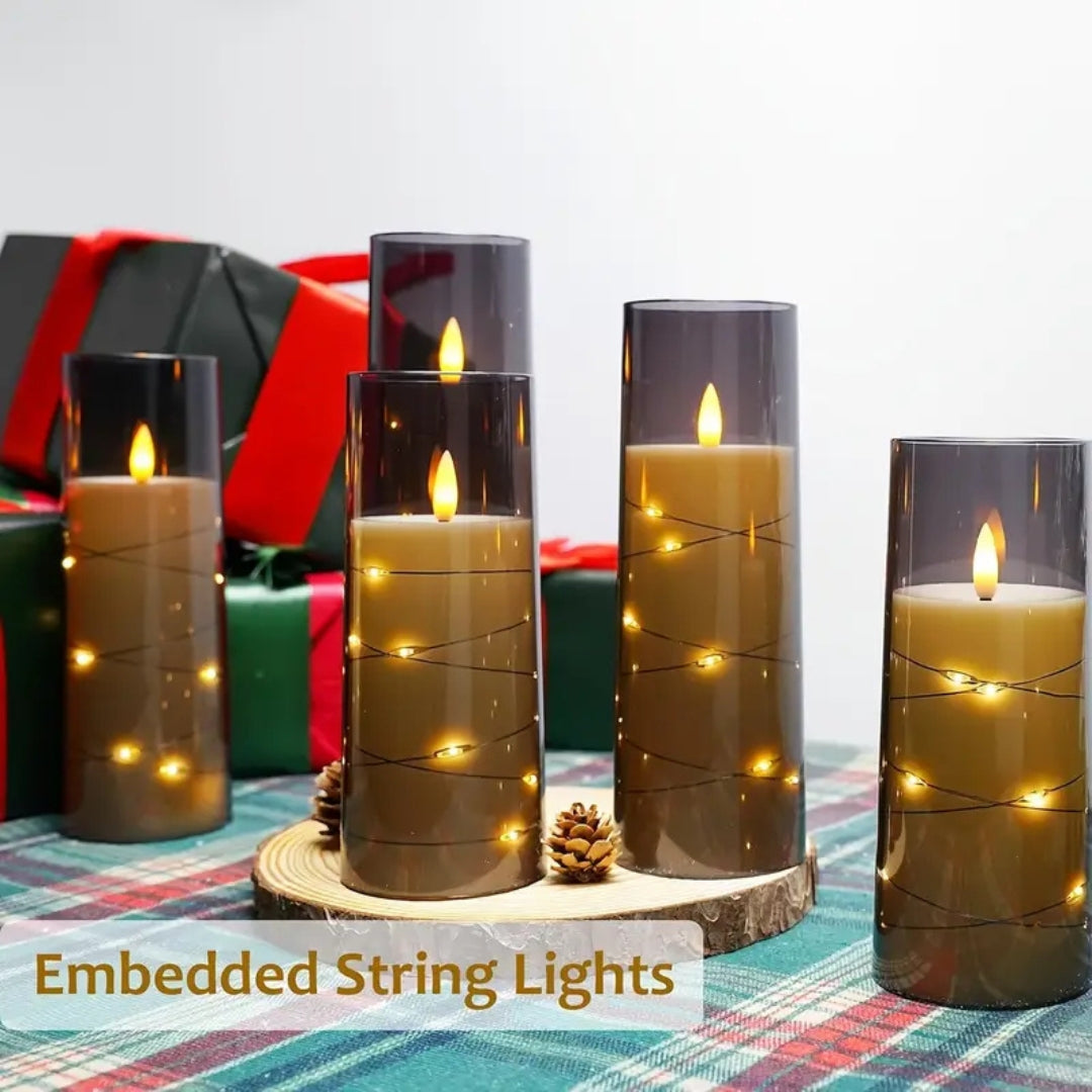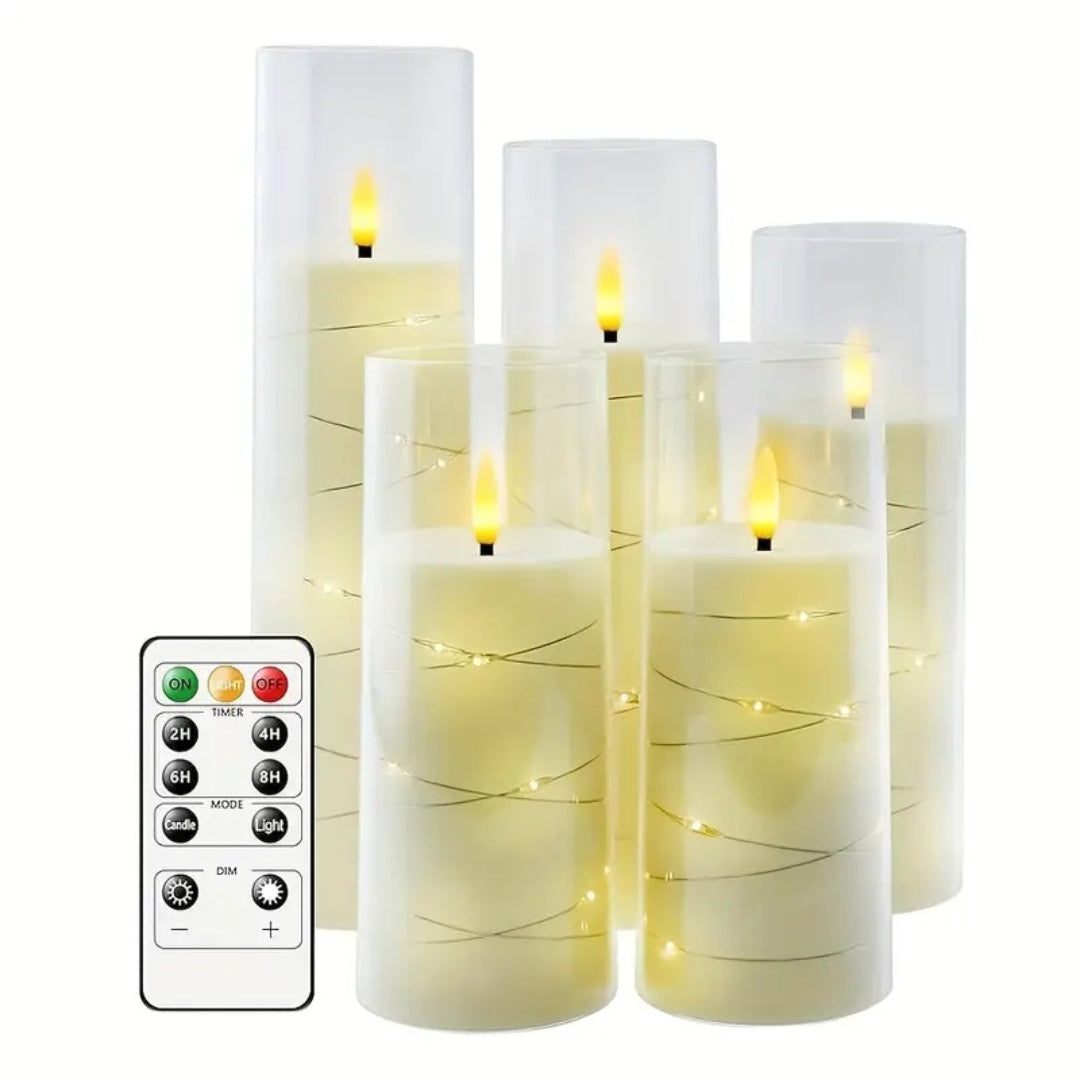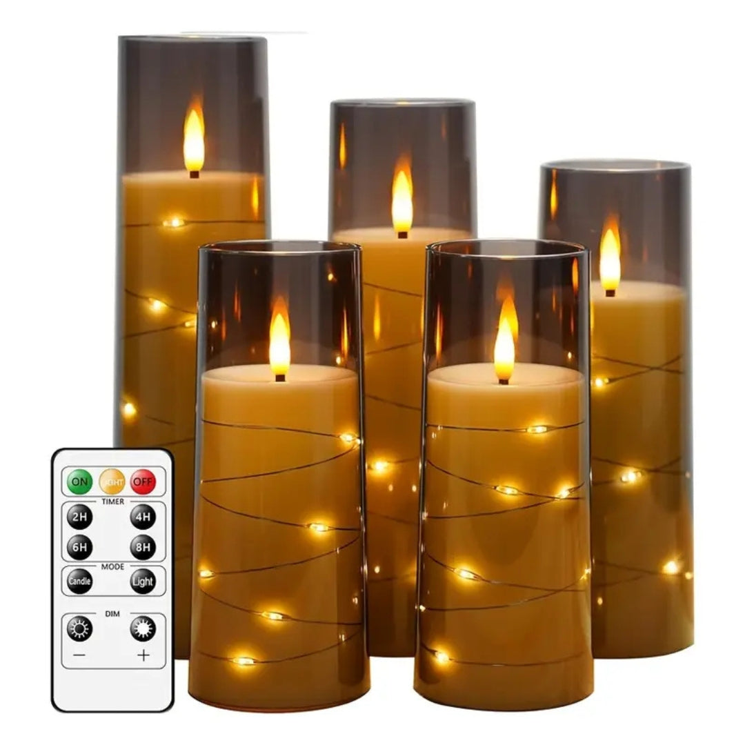Breng warmte, sfeer en veiligheid samen met deze moderne set van 5 vlamloze LED-kaarslantaarns. Het batterijgevoede ontwerp levert realistische, flikkerende “vlammen” zonder rook of hitte. Met de meegeleverde afstandsbediening schakel je eenvoudig aan/uit, kies je de lichtkleur (warmgeel of wit) en stel je de timer in. Perfect voor woonkamers, eettafels, feestdagen en seizoensdecoratie.